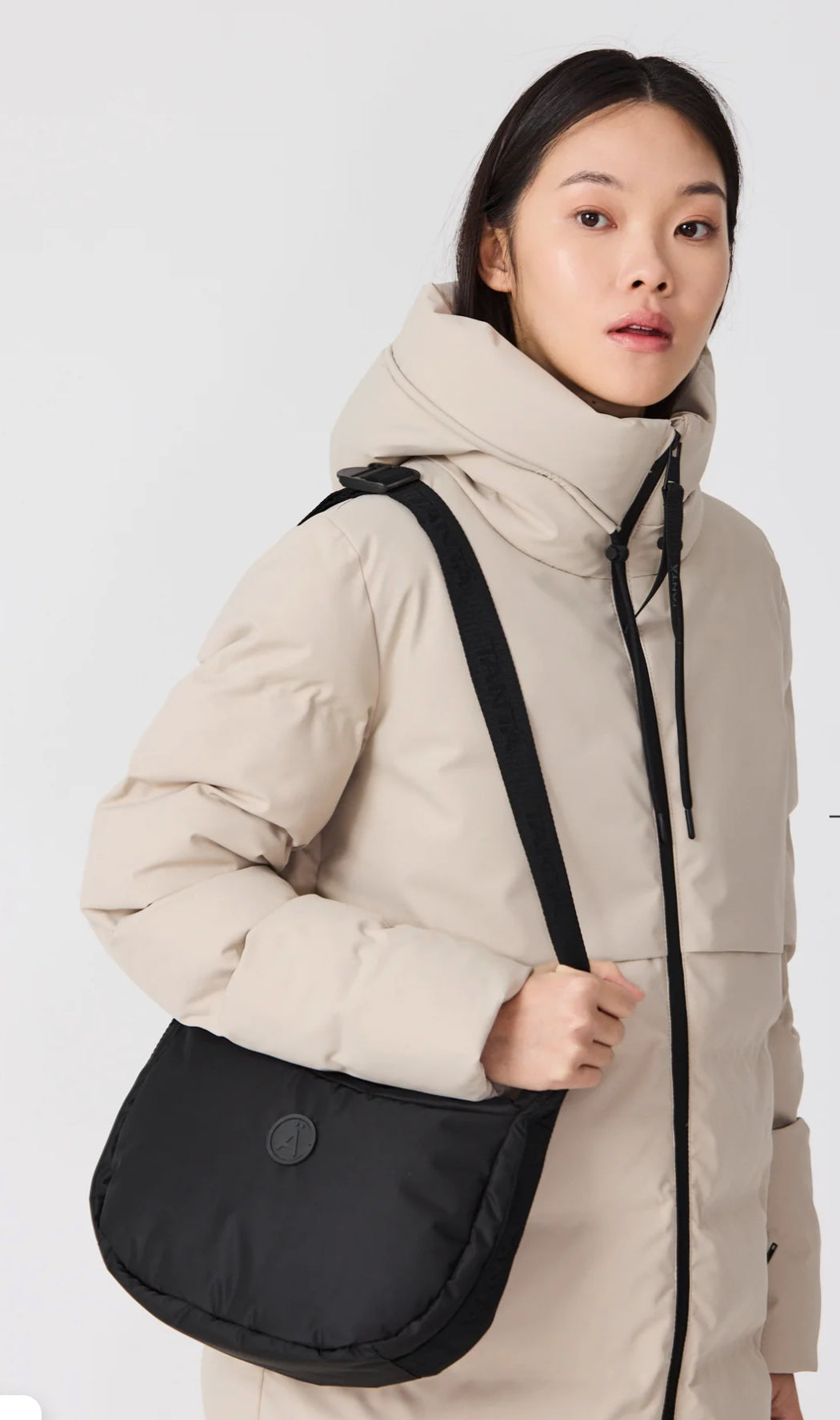 Padded bags are a basic of TANTÄ, and the Bura quilted crossbody bag remains true to our characteristic style. Made with our shiny memory fabric and water repellent, it is perfect to carry the basics of everyday life. Finished with a resin zipper and an adjustable strap with jacquard logo, it combines functionality and fashion.