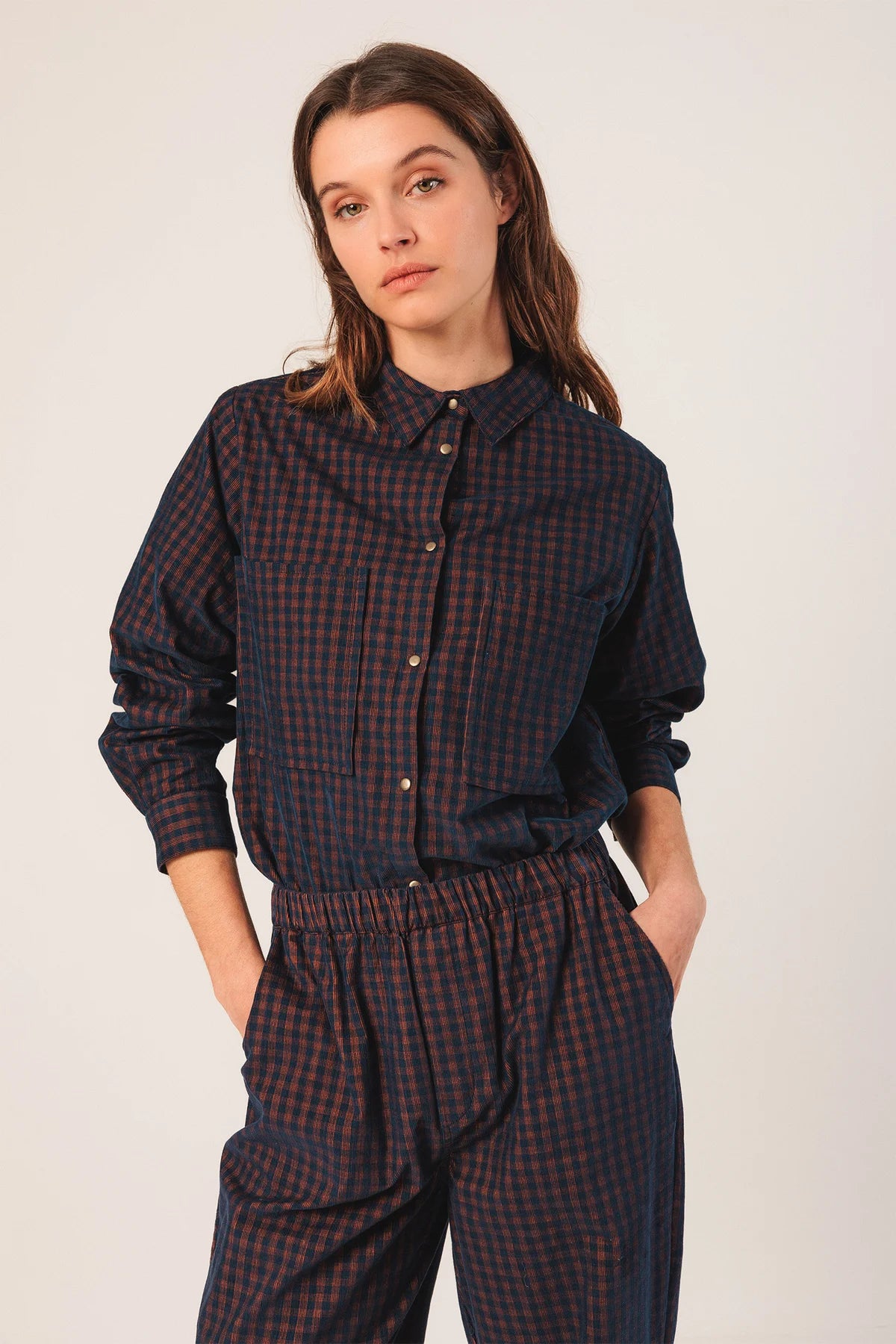 • Adjustable elastic waistband • French-cut front pockets and back patch pockets • Loose-fitting leg, with a closer fit at the hem • Cotton vichy-motif in micro-corduroy fabric • Relaxed fit: Designed to feel slightly loose • Measurements on size 36 flat. Waist: 34cm. Rise length: 30,5cm. Inseam length: 72cm